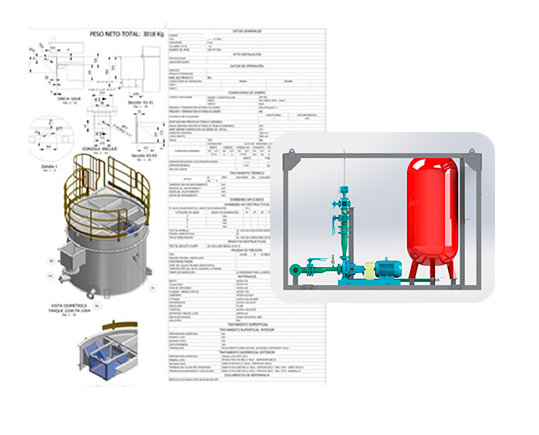 Cálculo de espesores, refuerzos, boquillas y bridas bajo normativa ASME. Evaluación de condiciones de trabajo, pruebas de presión y factores de seguridad.