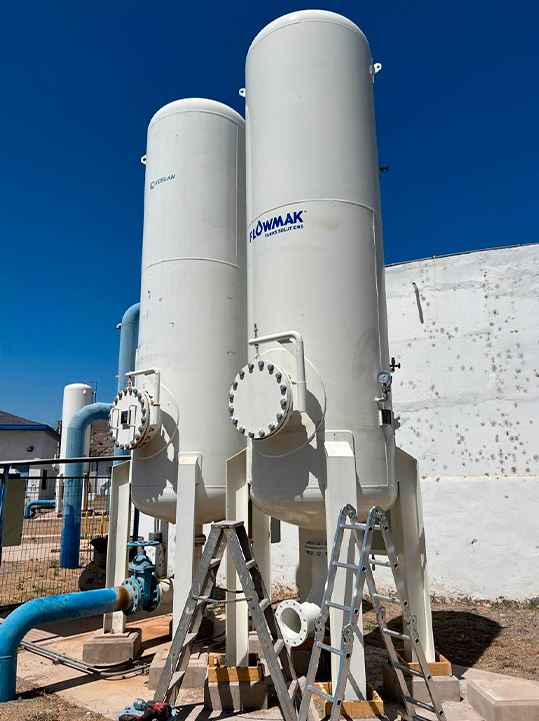Fabricación de estanque 6 m3 para operación presión de diseño 20bar Con si sistema de mitigación de golpe de ariete con compresor